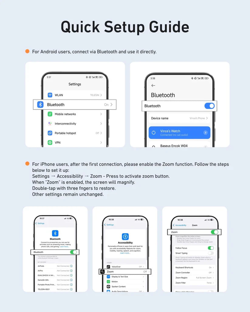 Up to 10m (32.8ft) via Bluetooth, no extra apps needed.